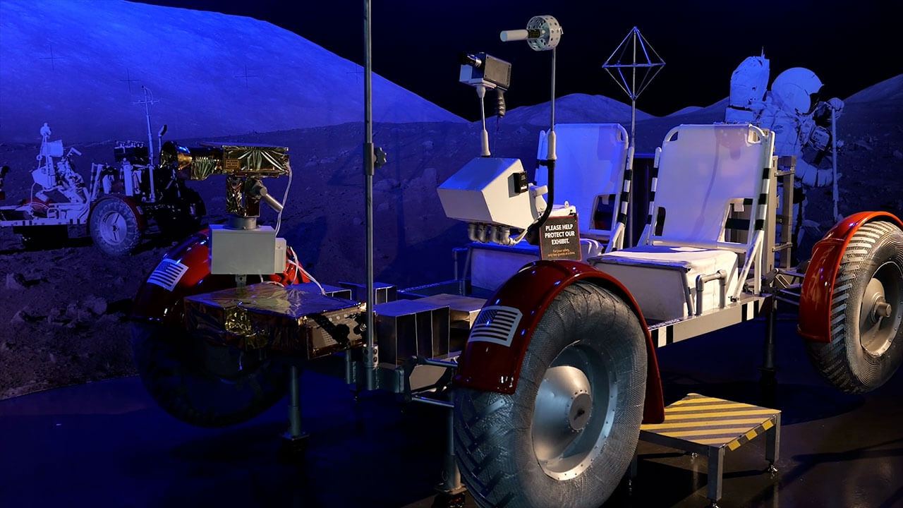 More than just look, visitors can also touch a piece of the moon in the form of a lunar meteorite and make their own prints in the lunar dust by walking across an digital moon surface floor. Guests can also climb aboard a mockup of an Apollo lunar rover for what the Intrepid promises will be a unique photo opportunity.