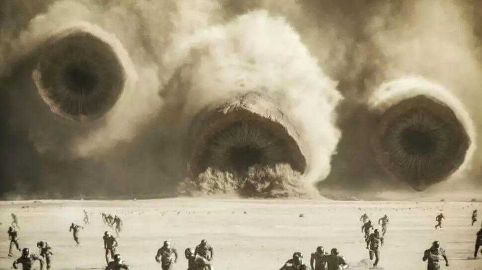 However, Arrakis wasn’t always a desert. In Dune lore, 91% of the planet was once covered by oceans, until some ancient catastrophe led to its desertification. What water remained was further removed by sand trout, an invasive species brought to Arrakis. These proliferated and carried liquid into cavities deep underground, leading to the planet becoming more and more arid.