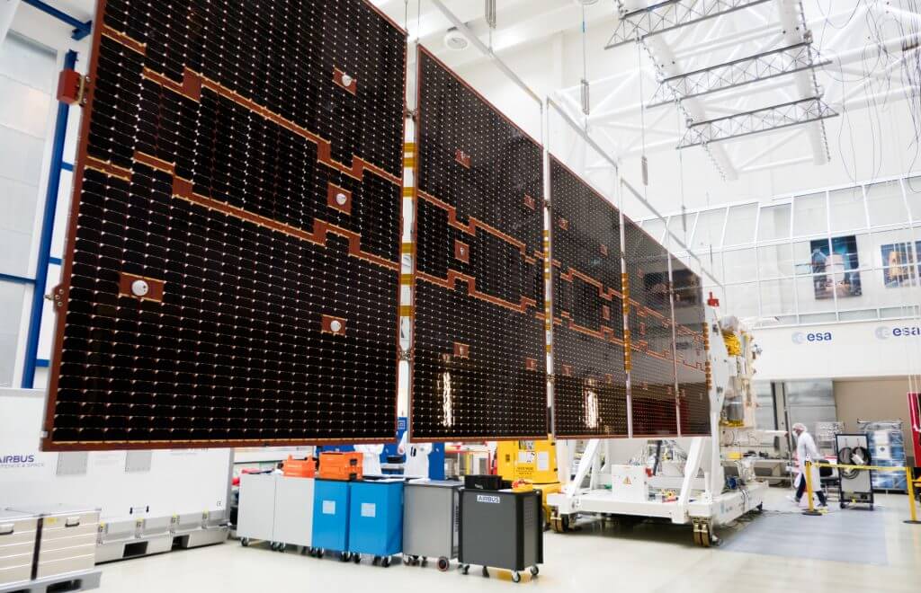 EarthCARE satellite’s solar wing expanded for testing (Image Credit: Phys.org)