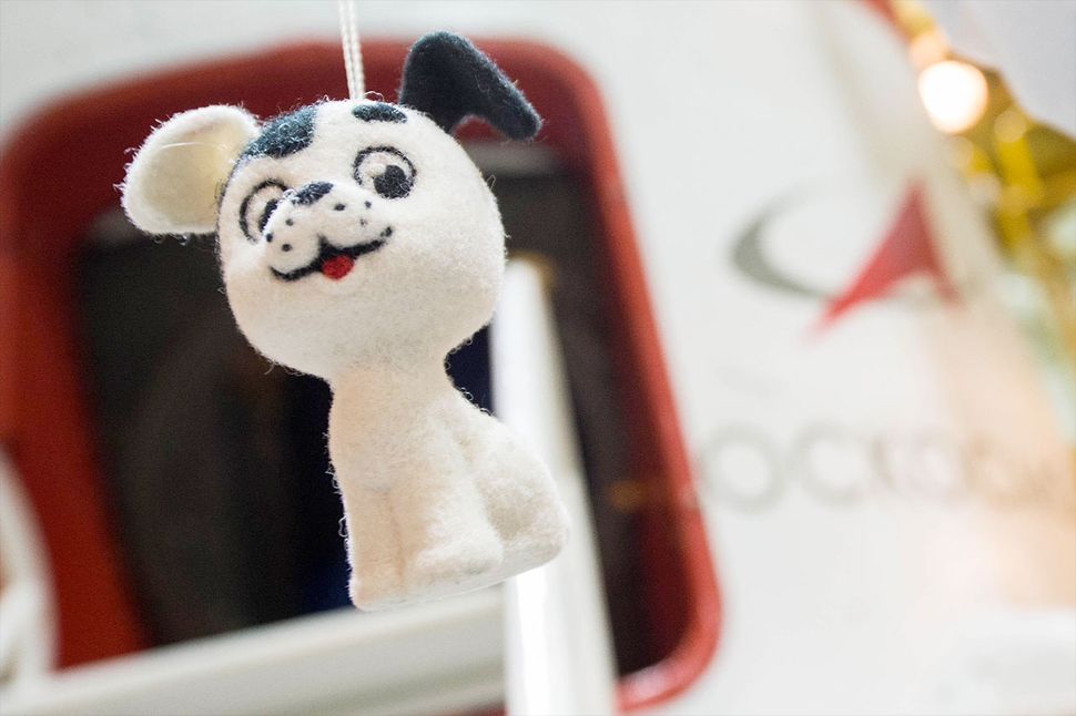 Nine minutes into the flight, a small figurine of “Sharik,” the black and white puppy from the Soviet-era cartoon “A Kitten Named Woof,” began to float while attached to a tether.