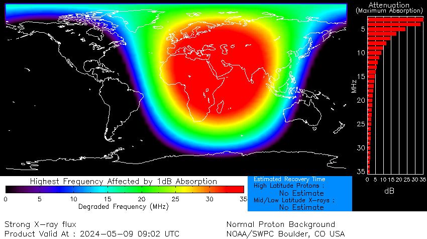 Powerful solar flares like the one observed this morning can cause shortwave radio blackouts on the sunlit side of Earth at the time of the eruption. As such, the X-flare this morning caused shortwave radio blackouts across Europe and Africa as seen in the image above.
