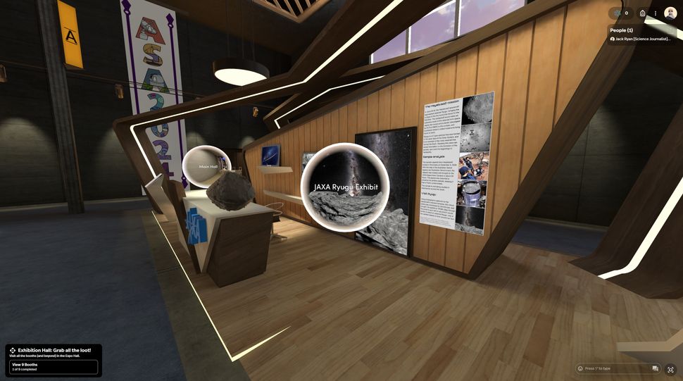 So, during the conference, I booted up Spatial, ran my avatar through the Exhibition Hall and plunged him through a portal to Ryugu and the spacecraft that visited it in 2018. It kind of felt like I was playing Super Mario 64 and had jumped through a portrait.
