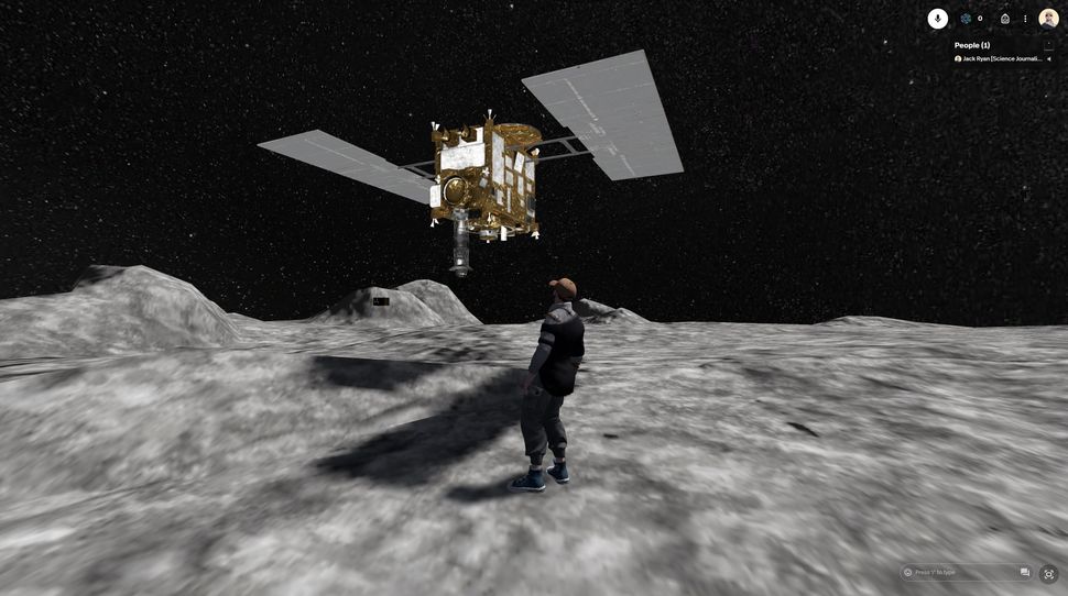 The “I” in this situation is my avatar, a digital approximation of myself that has a more consistent beard length and isn’t constantly rubbing sleep from its eyes. The Hayabusa2 spacecraft I stood on, and the asteroid beneath, are digital avatars too, recreated in virtual reality.