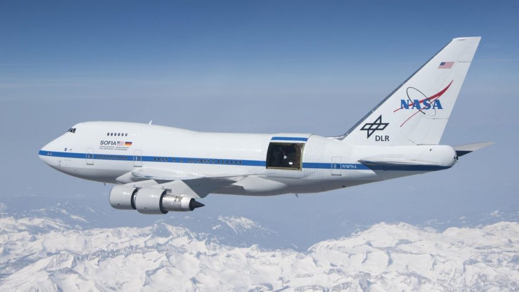 SOFIA, for which NASA partnered with the German space agency (DLR), is a flying observatory. More specifically, it’s a Boeing 747SP aircraft with a massive hole in its size, through which a 106-inch (2.7-meter) telescope takes in infrared views of the universe. SOFIA’s 10-hour flights at 38,000 to 45,000 feet (about 11,500 to 13,700 meters) meant its instruments had to observe through much less of Earth’s atmosphere, which blocks infrared light.