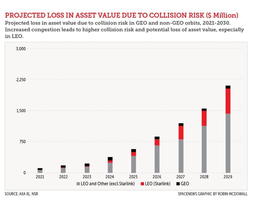 The probability of collision is only likely to increase as the volume of spacecraft grows, which in turn is driving a reassessment of risk tolerance from insurers. According to AXA XL, approximately $35 billion worth of assets are in LEO, but only 8% are currently insured. Insurance firm Assure Space, a unit of AmTrust Financial, stopped providing insurance to spacecraft in LEO in 2020, and the few policies it has sold since then exclude collision damage. Co-founder Richard Parker told Reuters: “This is a real issue for insurance… It may start to get difficult to get that type of coverage in the near future as more insurers realize that this is a significant risk that we can’t even get our arms around.”