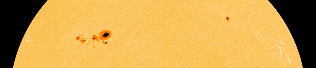 The vertical alignment is strange because sunspots usually run horizontally across the sun’s lines of latitude. The perpendicular line-up might mean nothing, or it could indicate something odd happening in the magnetic field of the sun.