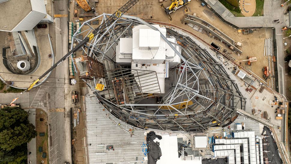 “The first thing they need to do before they do anything else is start disassembling and taking out the temporary structure within the building. Like an arch, the diagrid did not support itself until it was completed,” Rudolph told collectSPACE.