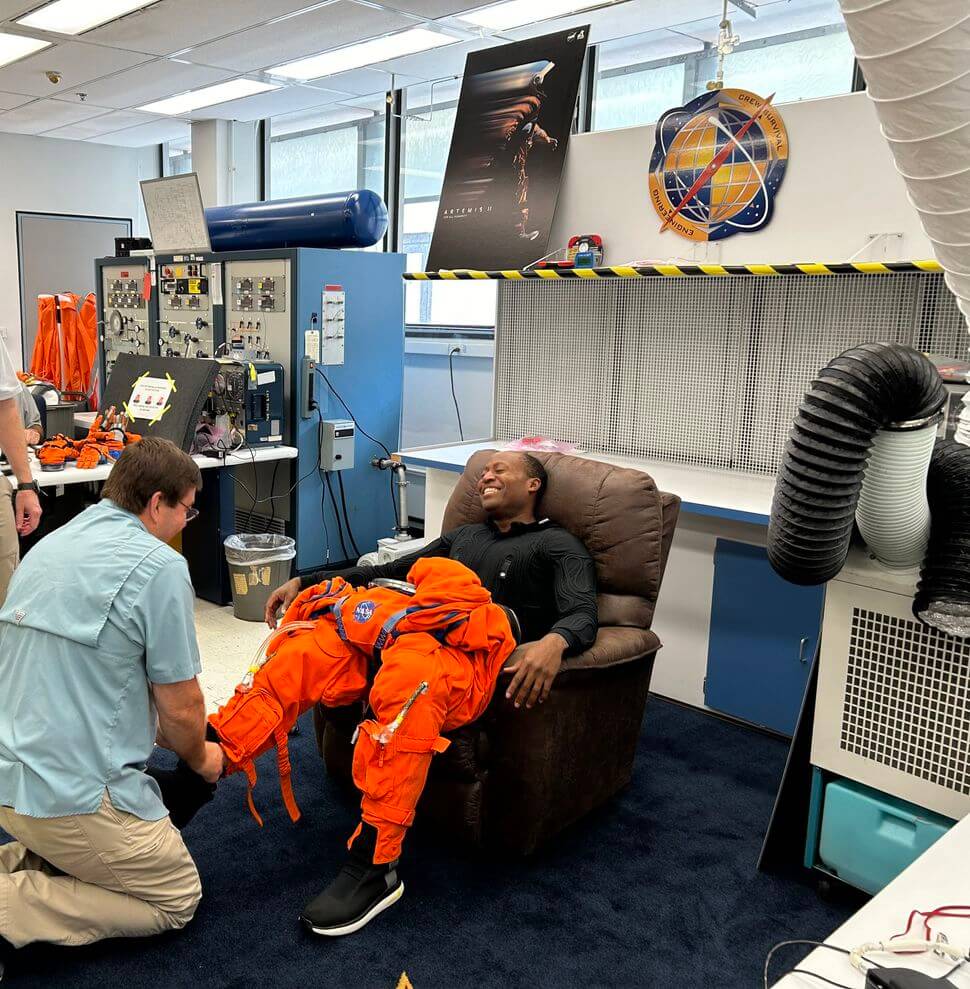 “Excited for a suit fit check in preparation for Artemis 2 back up mission,” Douglas wrote on Friday (July 12), alongside pictures of him grinning inside the spacesuit.