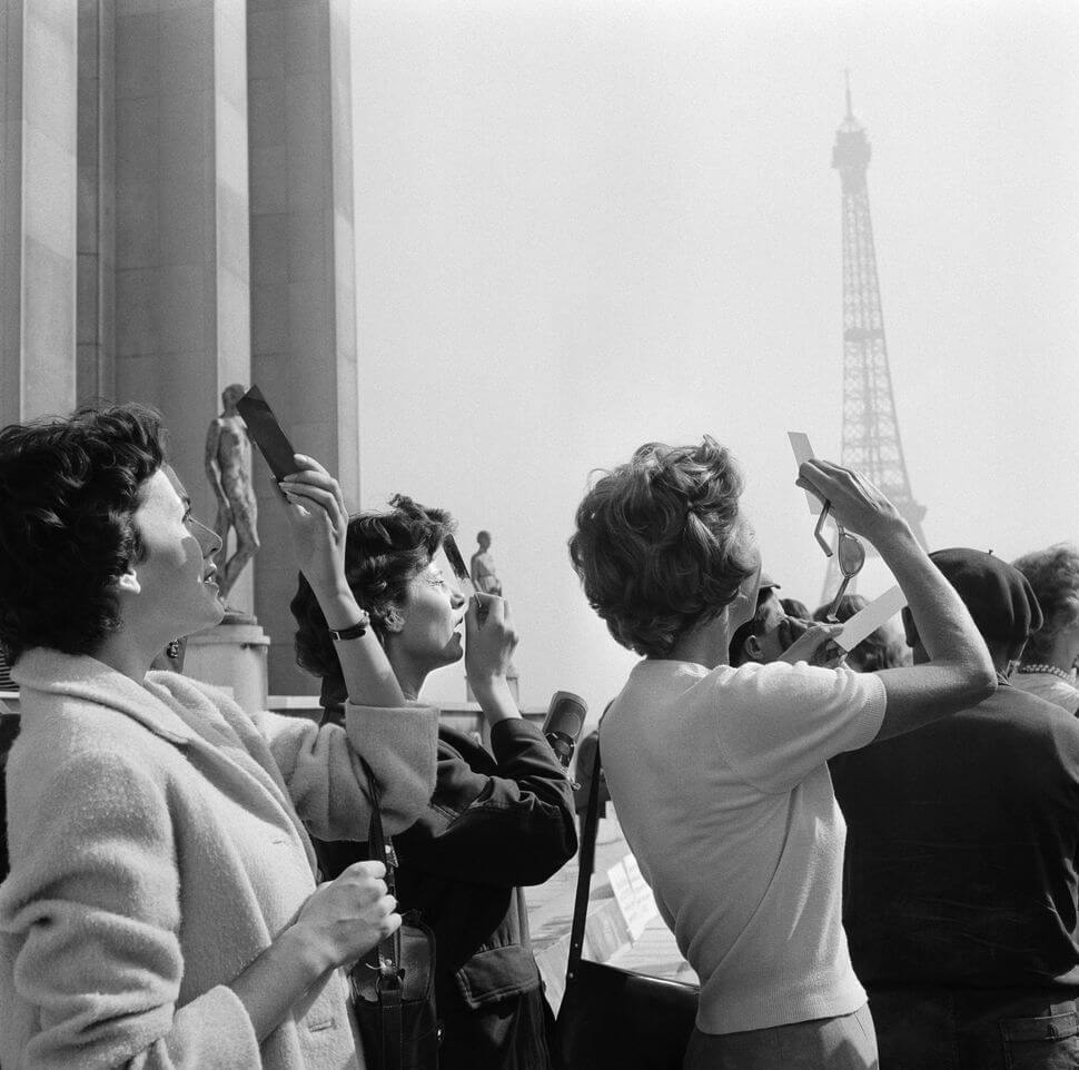 Crowds gather to watch a partial solar eclipse from the steps of Sacré Coeur, in Paris, France, October 2, 1959.