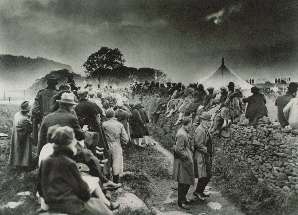 People on a hill near Giggleswick, North Yorkshire, U.K. watch the total eclipse of the sun on June 29, 1927.