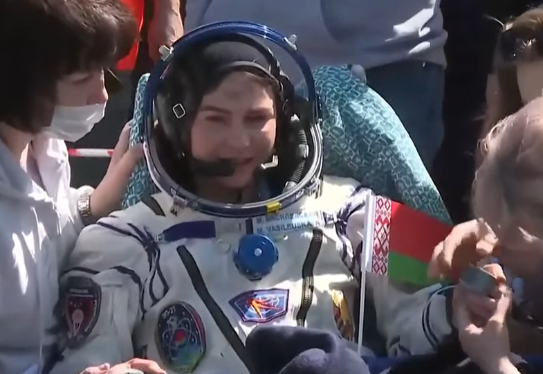 The first female Belarusian in space, alongside a NASA astronaut and a Russian cosmonaut, came back to Earth early this morning (April 6).