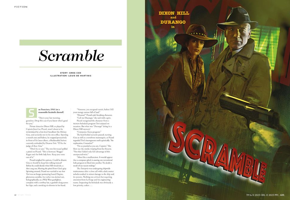 “These mini-epics include the return of noir detective Dixon Hill, a strange tale of the crew of the Enterprise-D forgetting their first officer, William Riker, a dramatic prelude to the classic episode ‘What Are Little Girls Made Of?’ and even a story showcasing Captain Jonathan Archer’s loyal hound, Porthos.”