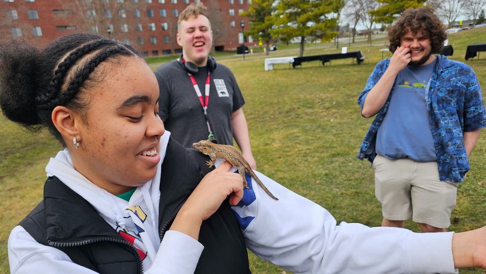 “The quail thought it was night and went to roost and sleep, and the gecko woke up and was walking around,” Zadie said later after asking Dr. Sarah Sirsat, an assistant professor of biology for SUNY Potsdam who brought the animals out, what happened to them.