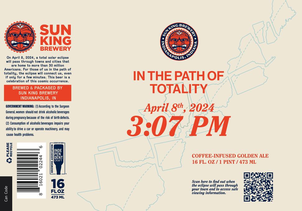 “Sun King and eclipse fans can purchase cans to-go at Sun King’s central Indiana taprooms [Indianapolis, Carmel, Fishers and Kokomo] and at select locations throughout the metro area,” Colt said, adding that some events in the area will be offering cans as well.