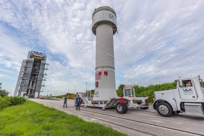 Engineers and technicians have spent the past few weeks stacking components of the Atlas rocket to complete its assembly ahead of arrival of the Starliner OFT-2 commercial crew vehicle which will be rolled out to pad 41 soon for stacking and integration activities.