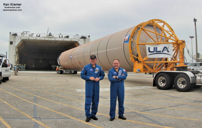 The Atlas V components for CFT arrived at the Cape launch site on June 21 after unloading from the rocket delivery ship in Port Canaveral, FL – read our story illustrated with our photos.
