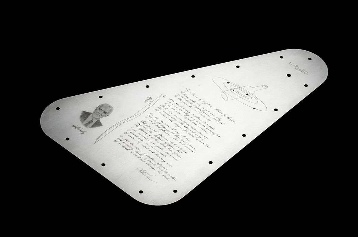 Rounding out the plaques’ features are a small microchip stenciled with more than 2.6 million names submitted by the public as part of NASA’s Message in a Bottle campaign and, below that, Limón’s handwritten poem.