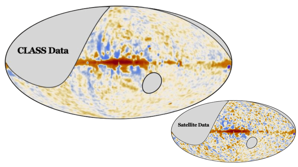 The measurements made by CLASS have to do with “microwave polarization,” associated with the direction in which waves of light are aligned. These measurements will help scientists filter a wavelength of radiation released from the Milky Way connected to the universe’s first light, a celestial fossil called the “cosmic microwave background,” or CMB.