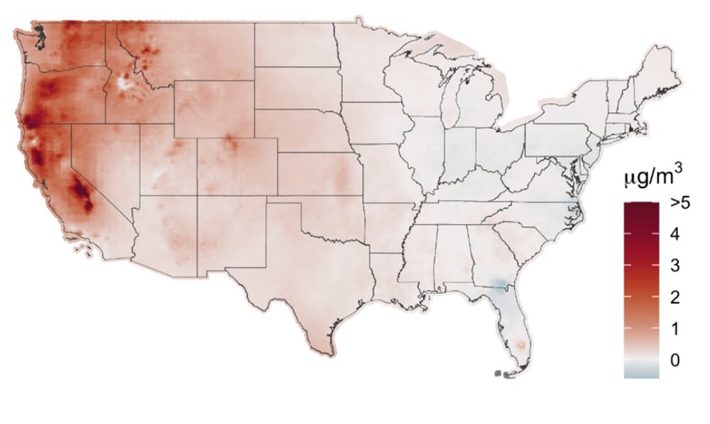 Using statistical modeling and artificial intelligence techniques, the researchers estimated concentrations of PM2.5 specifically from wildfire smoke in sharp enough detail to reveal variations within individual counties and individual smoke events from coast to coast from 2006 to 2020.
